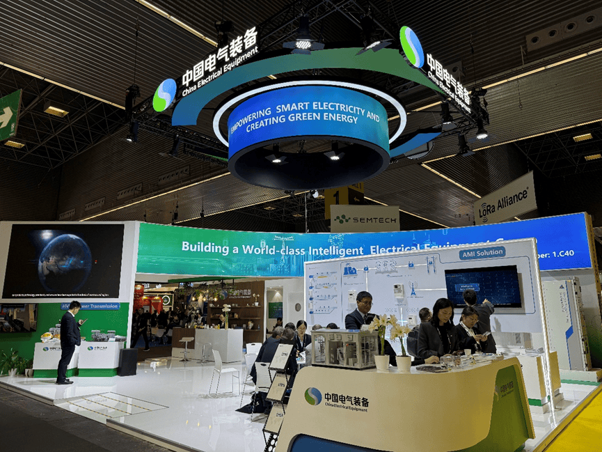 中国电气装备率领所属子企业集体亮相展会,以“赋能智慧电气、创引绿色能源”为主题,聚焦“特高压输电、智慧电网、智能用电、绿色装备”四大板块,通过实物展示、全景沙盘、数字化展览等多元化形式,全方位展现在电力能源领域的产业链综合优势、高端装备制造能力以及绿色低碳转型的创新实践成果。